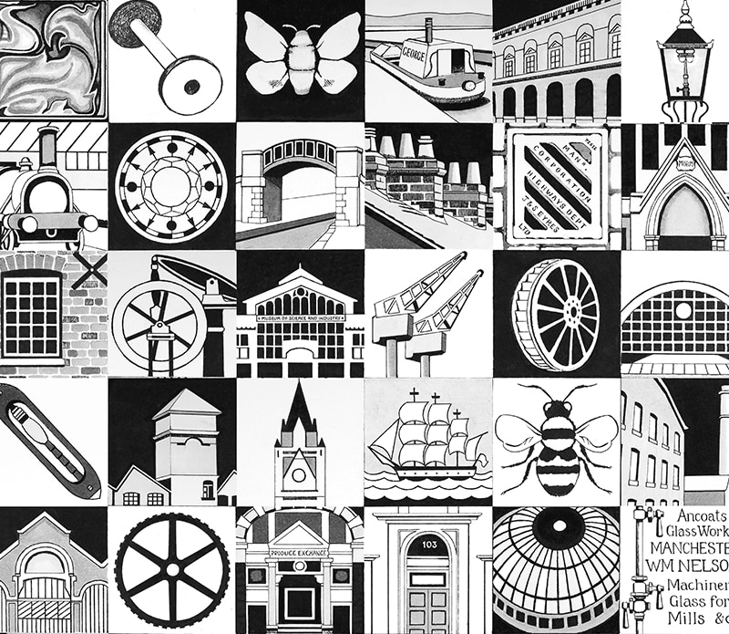 Sue Scott is the creative behind this label. Inspired by the historical, industrial and contemporary architecture found within Manchester, she beautifully captures the city in which generations of her family worked with this modern black and white artwork.