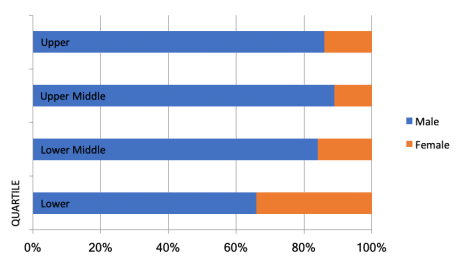 Overall males represent a higher proportion of the workforce across each of the four quartiles, as shown in the table above.